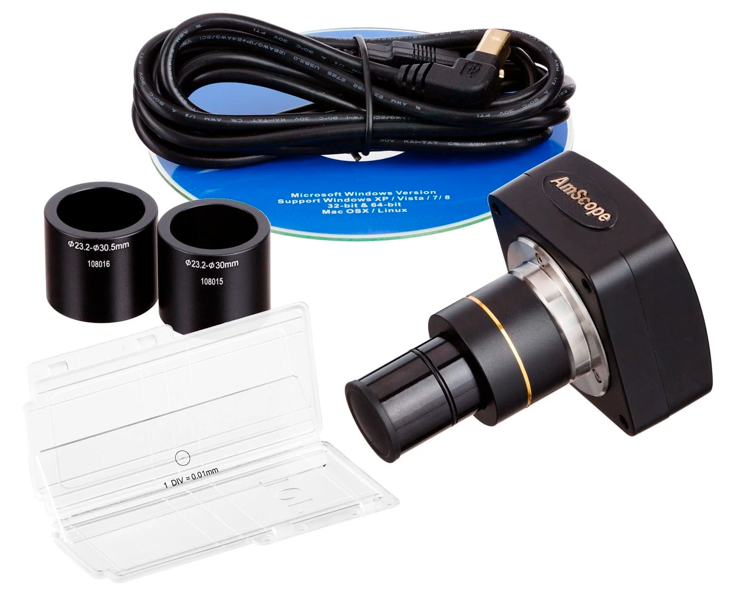 Det medfølgende 5,0 MP USB 2.0 kamera gør det muligt at vise mikroskopbilledet live på computer, optage billeder og video samt reducere øjentræthed ved længere tids arbejde. En 0,5X reduktionslinse medfølger for større synsfelt.