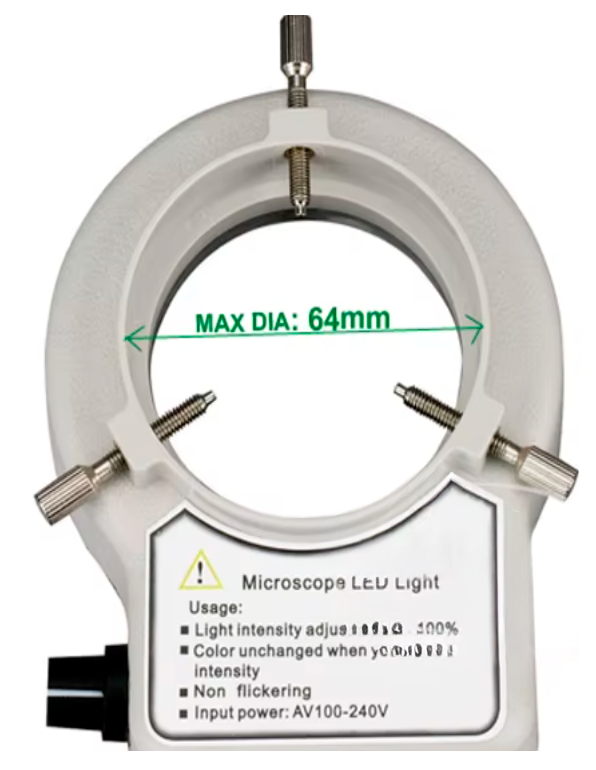 TILBUD: 56-LED lysring til stereomikroskop eller digitalt mikroskop – skyggefri og justerbar belysning. Passer til linsediameter: 30 mm – 63 mm.